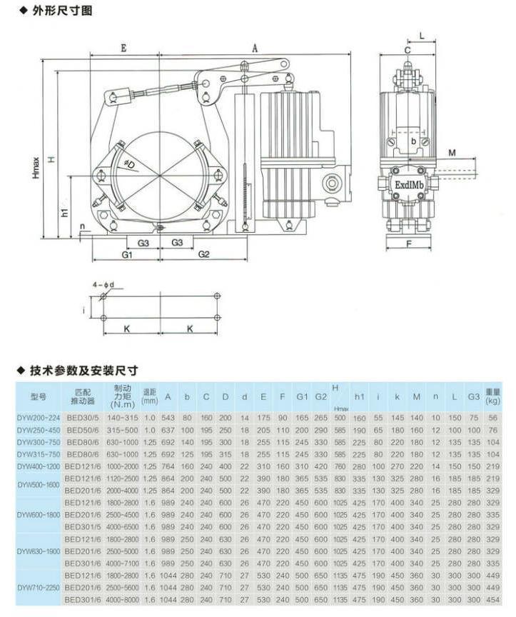 DYW,BYWZ5系列制動器連接尺寸和技術(shù)要求符合JB/T6406-2006標(biāo)準(zhǔn),制動力矩參數(shù)符合DIN15435標(biāo)準(zhǔn)。DYWZ5系列制動器連接尺寸和制動力矩參數(shù)符合GB6333-86標(biāo)準(zhǔn),技術(shù)要求符合JB/T6406-2006標(biāo)準(zhǔn)。DYW和DYWZ5系列鼓式制動器配套符合GB3836.2的Ed系列隔爆型推動器。本系列適用ⅡA、ⅡB、ⅡC溫度組別為T1-T4組可燃?xì)怏w與空氣形成的爆炸性混合物場所。